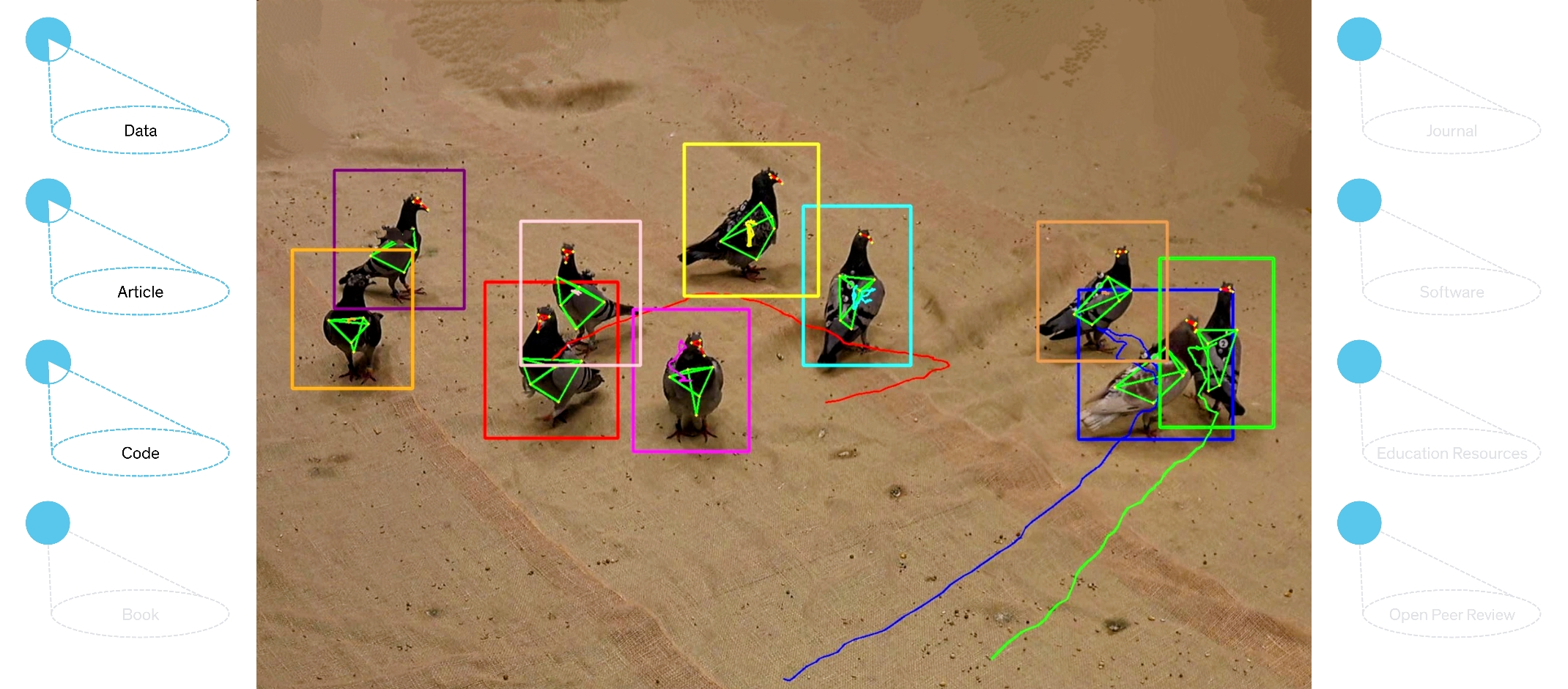 Mit 3D-POP (kurz für 3D-Posture of Pigeons) stellen Alex Chan und Hemal Naik vom Konstanzer Exzellenzcluster „Centre for the Advanced Study of Collective Behaviour” einen freien Trainingsdatensatz aus etwa 300.000 annotierten Einzelbildern von sich frei bewegenden Tauben zur Verfügung. Für jedes Bild enthält der Datensatz Informationen zur Körperhaltung, Bewegungsbahn und Identität der Tiere. In ihrer Begleitpublikation zum Datensatz beschreiben sie außerdem eine Methode, die es erlaubt, umfangreiche annotierte Datensätze wie 3D-POP halbautomatisiert zu erstellen.