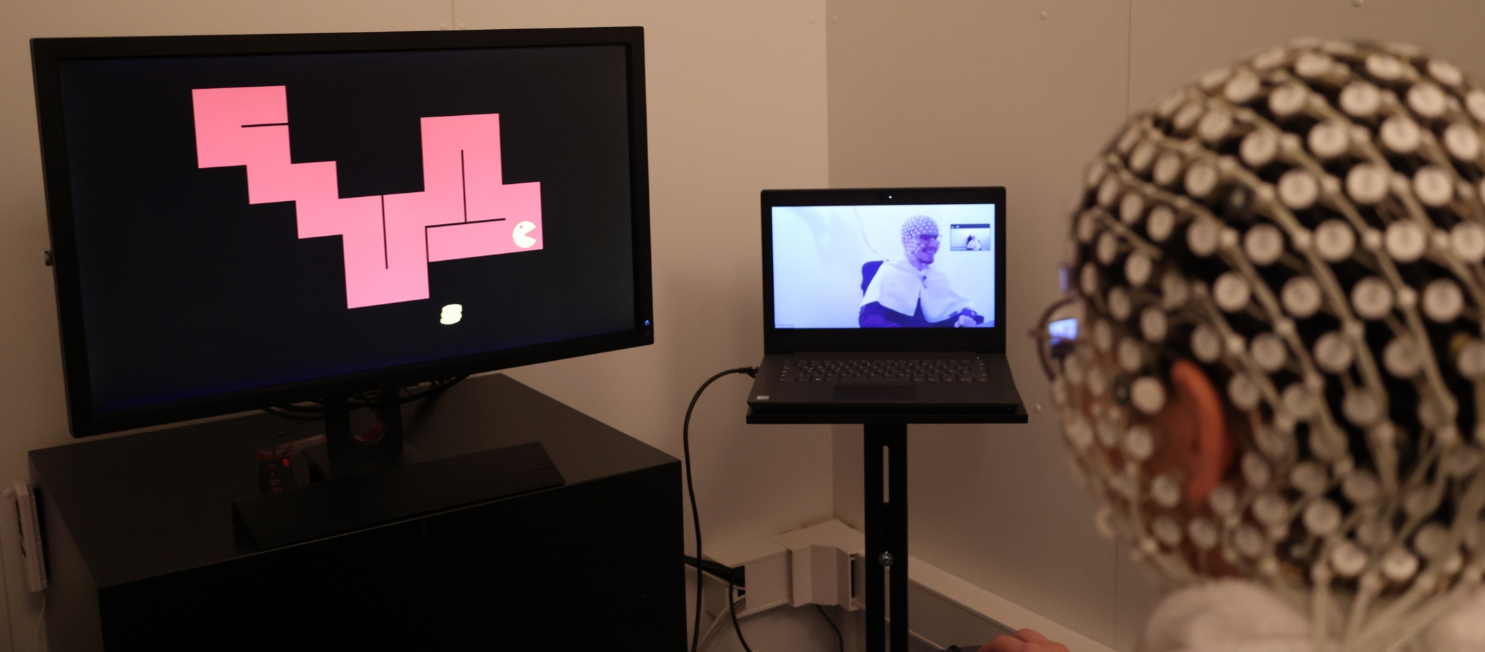 "Pacman is a cultural icon. Many have navigated the voracious Pacman through mazes in their youth, aiming to devour fruits and outsmart hostile ghosts", reminisces Karl-Philipp Flösch. Collaborating with colleagues, co-author Tobias Flaisch adapted the game. In the EEG version, two players instead of one must collaboratively guide Pacman to the goal. Flaisch explains: "Success hinges on cooperative behaviour, as players must seamlessly work together."