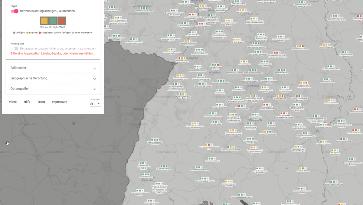 University of Konstanz develops visualization tool for illustration of critical care bed capacities all over Germany