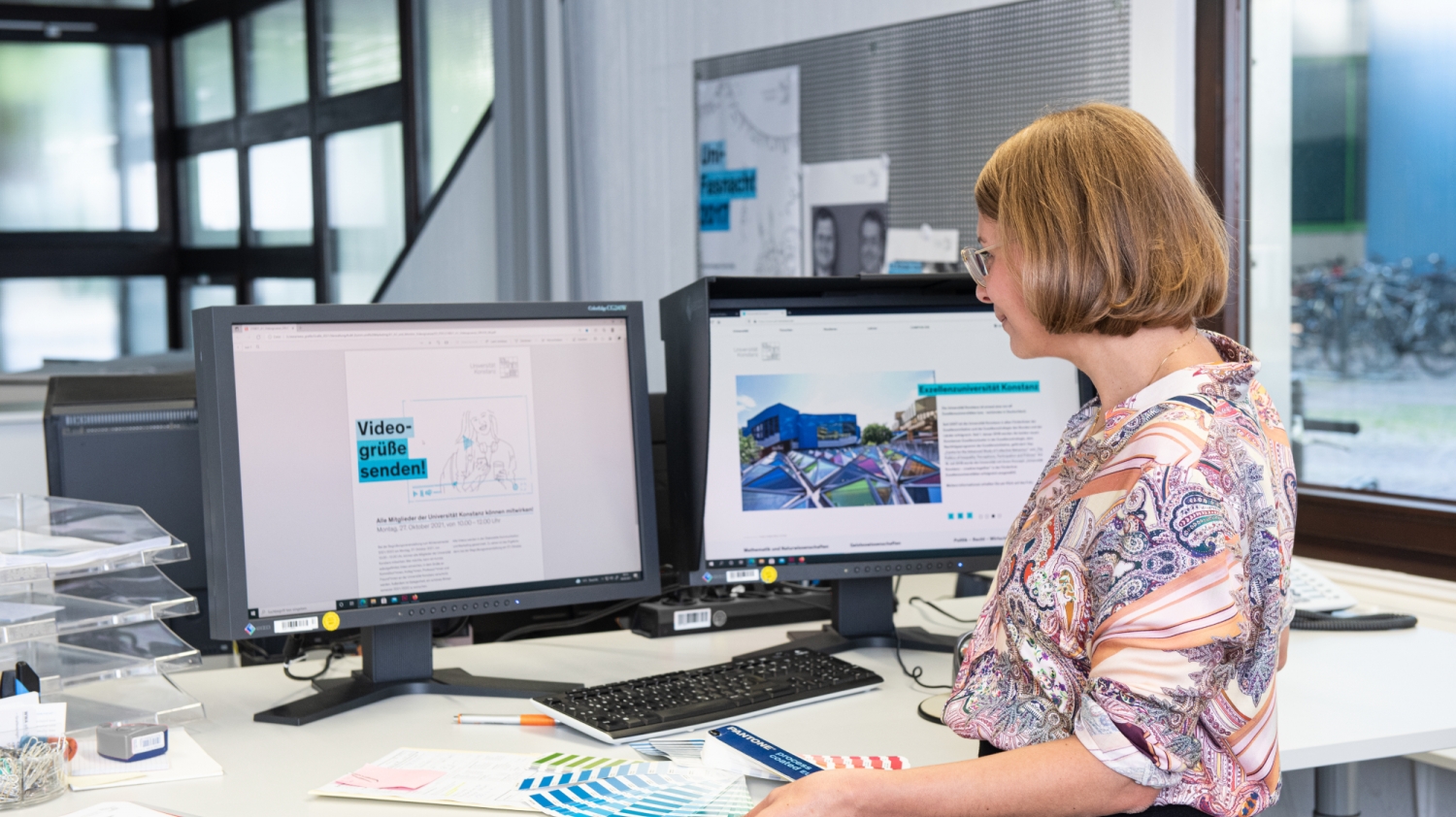 The graphic design team also creates a wide variety of communication materials for researchers and university units in accordance with the University of Konstanz’s corporate design. Here, Nadia Haji from the WWA graphic design team, creates a poster with an illustration for the start of the semester.