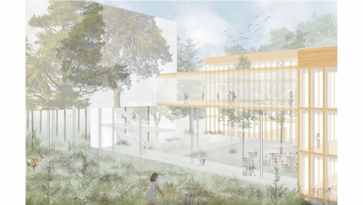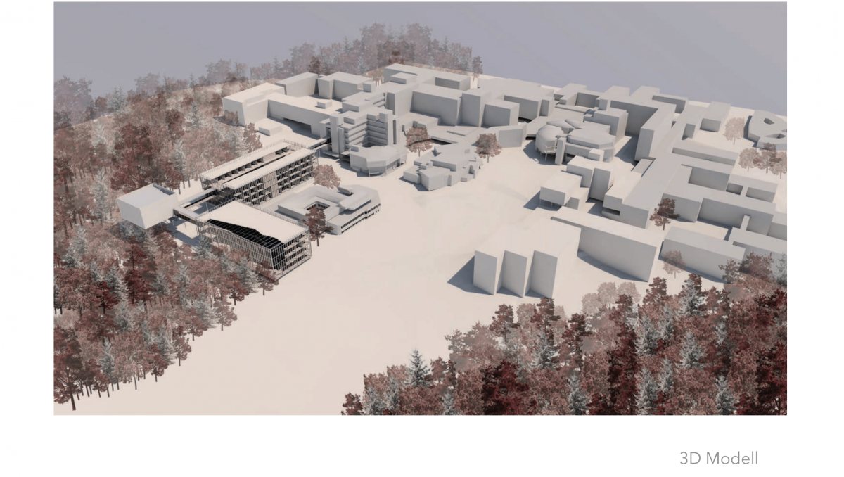 Im Entwurf von Daniel Loh, Hannah Klopstock und Pauline Klafke geht das Forum Konstanz nahtlos in den benachbarten Wald über. Nur eine gläserne Außenfassade trennt das Gebäude vom Wald, der sich sogar im Inneren des Gebäudes fortsetzt: Der als Canyon gestaltete Innenbereich, der vielfältige Begegnungen auf mehreren Ebenen ermöglicht, ist selbst mit Bäumen bepflanzt und vermittelt den Eindruck, mitten in der Natur zu sitzen. Die Teilgebäude des Forum Konstanz sind durch einen Baumwipfelpfad auf acht Metern Höhe verbunden; das auf Pfeilern stehende Ausstellungsgebäude „schwebt“ zwischen Baumkronen. Der Entwurf greift bestehende architektonische Elemente der Universität Konstanz wie das Glasdach und die Pfeiler des Gebäudes V auf und bringt sie in einen neuen Kontext.
