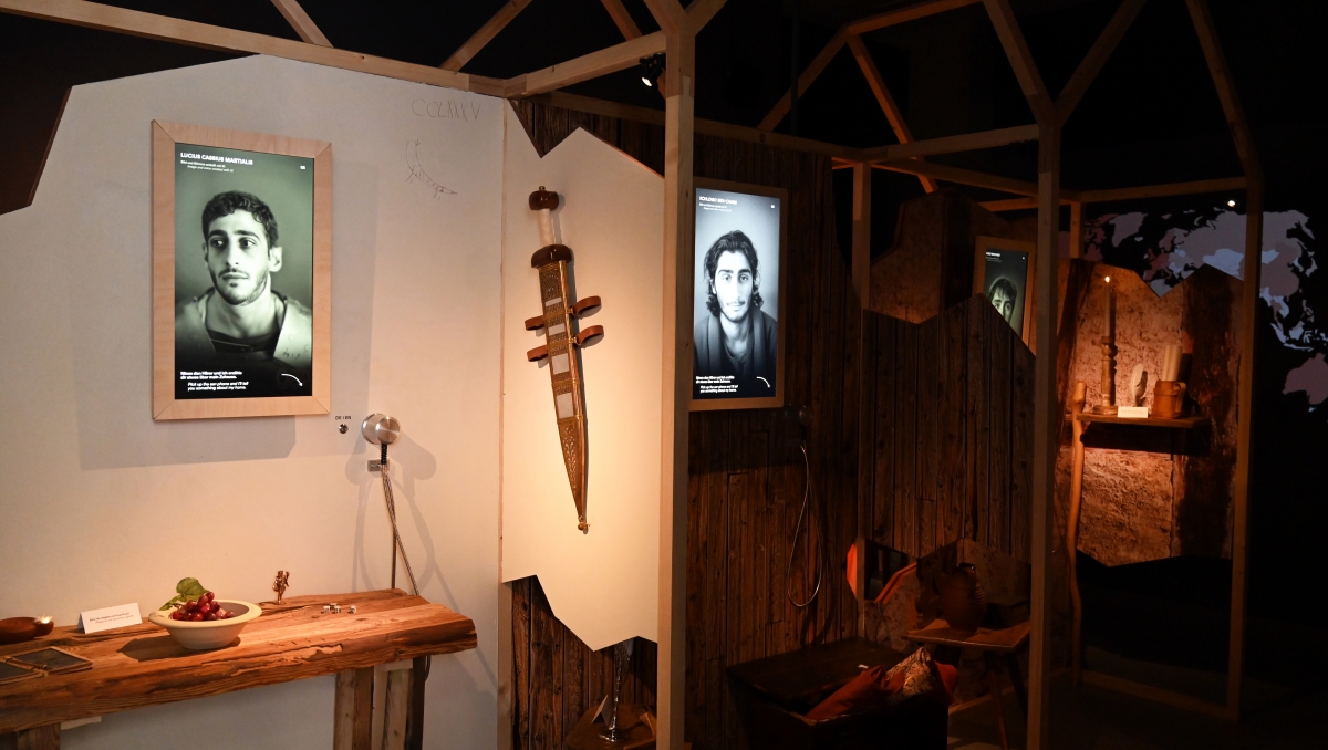 In der ersten Station ZUHAUSE begegnen wir sechs Avataren – fiktiven Personen, die zwischen später Antike und Jetztzeit leben und eine einschneidende Wende aufgrund von Migration erleben. All ihre Wege haben etwas mit der Stadt Konstanz zu tun, ob diese nun Ausgangs- oder Endpunkt darstellt: Der römische Legionär Lucius Cassius Martialis wird im Kastell Constantia (Konstanz) stationiert. Um den Aufbau einer jüdischen Gemeinschaft zu unterstützen, zieht es den Stoffhändler Schlomo Ben Chaim in die Stadt des Konzils, welche Hugo Wochner, Anhänger der Täuferbewegung, knapp zweihundert Jahre später verlässt. Hedwig Bartsch wird als Kind an der Ostfront von sowjetischen Soldaten vertrieben. Hakan Gündoğdu kommt als Gastarbeiter nach Deutschland, während Rana al-Hassam mit ihrer Tochter Nour aus dem vom Bürgerkrieg zerrütteten Aleppo flieht. Ihre Beispiele zeigen, dass Migration ein epochenübergreifendes und universelles Phänomen ist – und so unterschiedlich die Beweggründe sein mögen, Menschen werden nicht nur äußerlich, sondern auch innerlich durch sie bewegt.