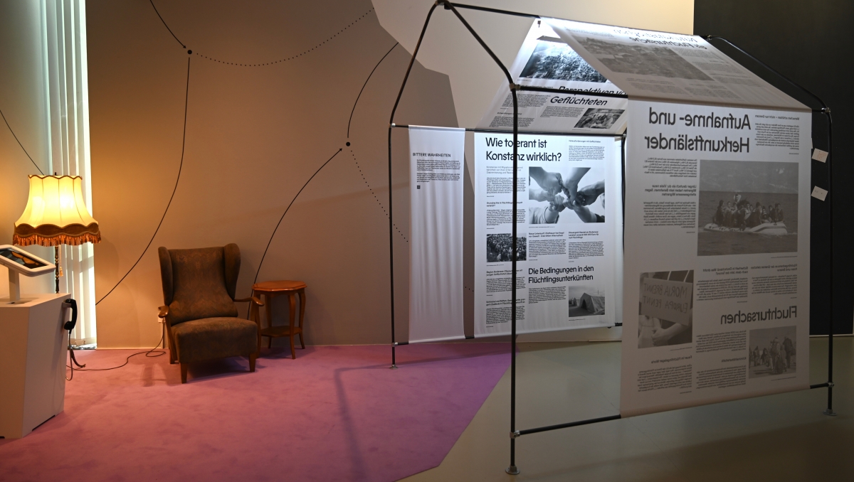 Am Ende der Ausstellung steht die Stadt Konstanz auf dem Prüfstand: „Wie tolerant ist die Stadt wirklich? Was sind die Bedingungen, unter denen Flüchtlinge heute leben?“ Hier wird gezeigt, dass – wie anderswo in Baden-Württemberg – auch in der Region Konstanz BürgerInnen sich gegen die Errichtung von Flüchtlingsunterkünften stellten. Und dass Menschen mit Migrationshintergrund bis heute Diskriminierung und Rassismus erfahren.