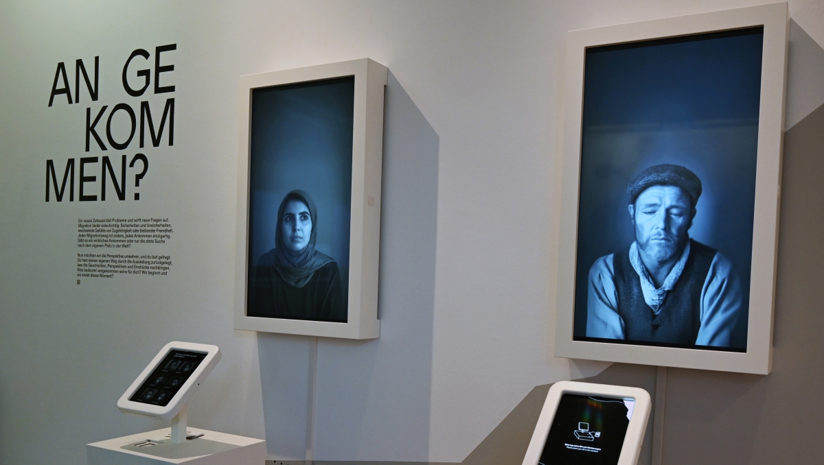 Hör- und Fragestationen, virtuelle Realität und Videos mit KI-generierten Charakteren veranschaulichen die jeweilige Migrationsgeschichte den Besucherinnen und Besuchern, die wiederum – mit ihrem „Ausweis in der Hand“ – immer wieder zum Nachdenken angeregt werden: „Welche Gründe würden dich dazu bewegen auszuwandern?“ „In welches Land könntest du dir vorstellen auszuwandern?“