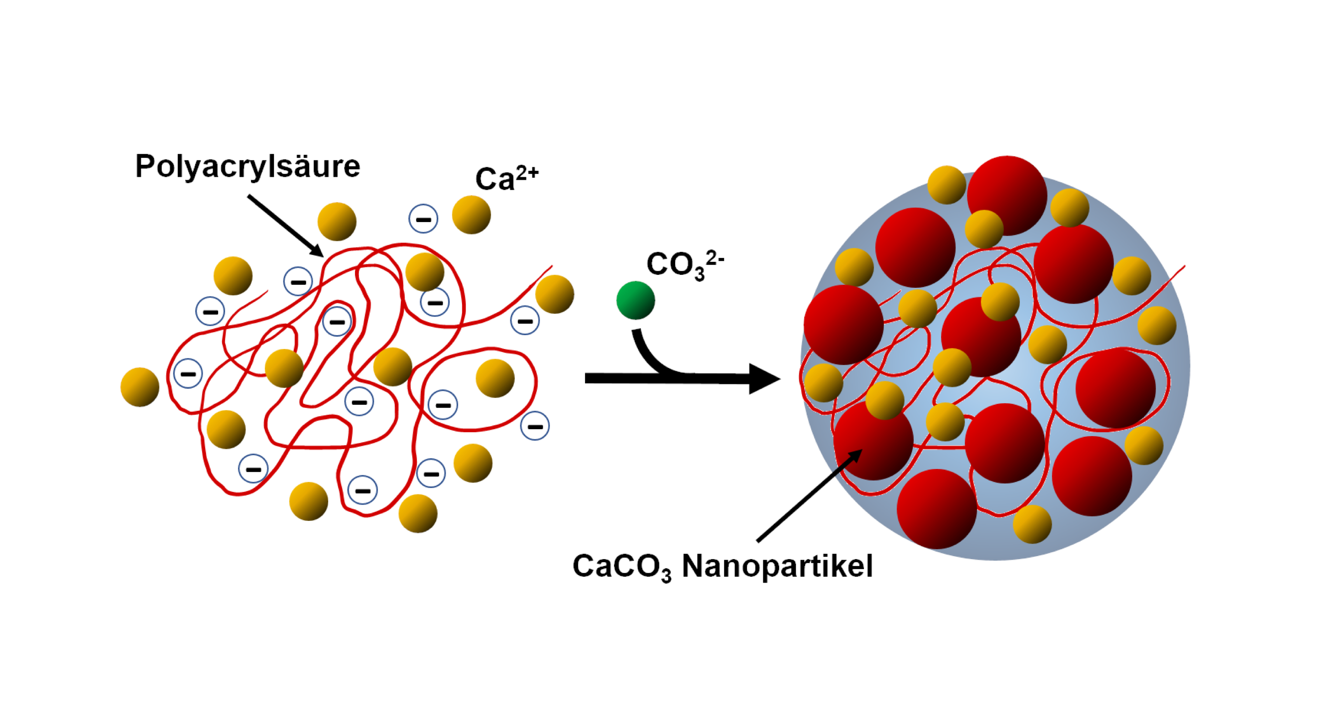 © Helmut Cölfen, Schematische Darstellung der Synthese des Mineral-Kunststoffs