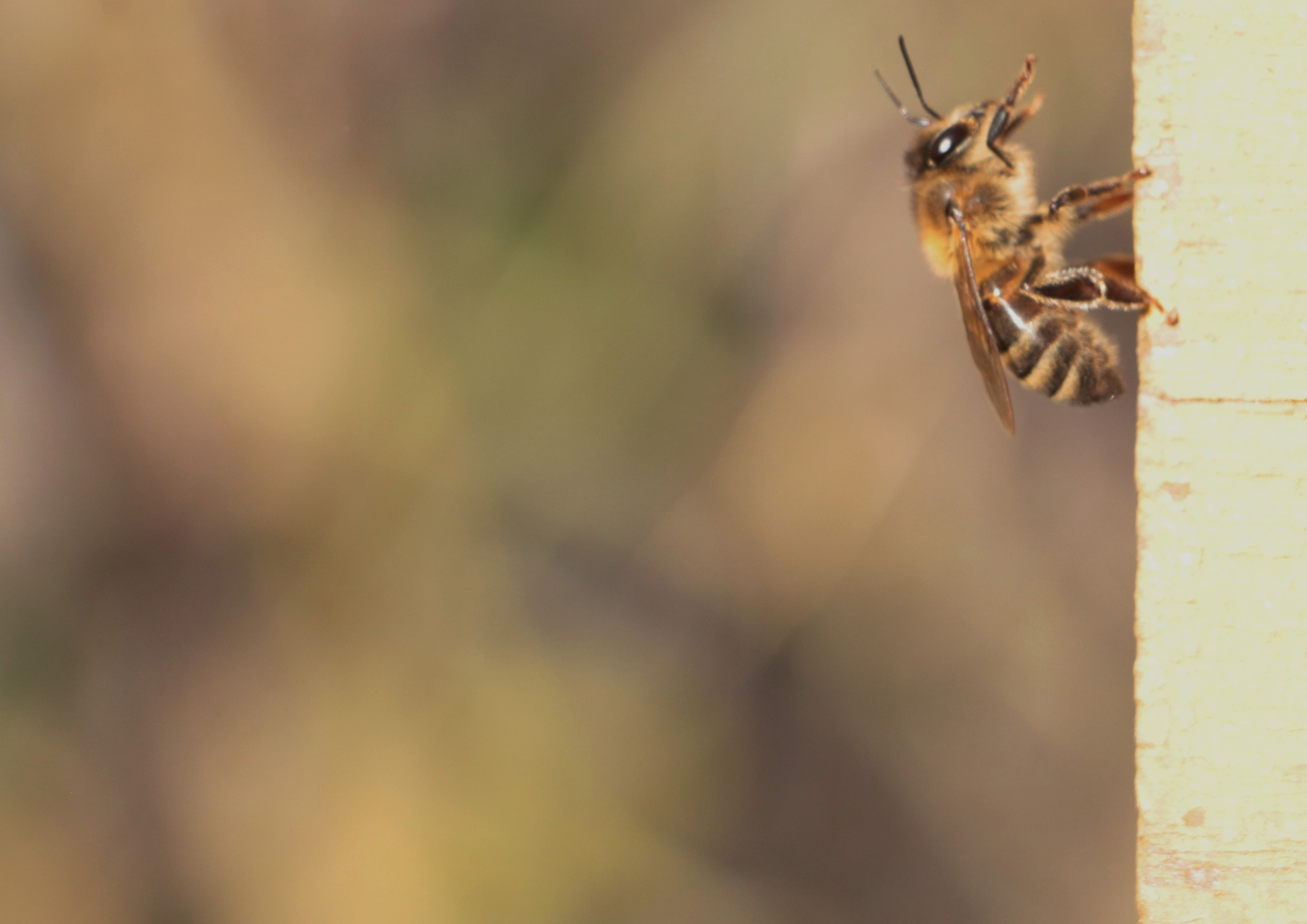 © M. Nouvian. Alarmierte Honigbiene (Apis mellifera)