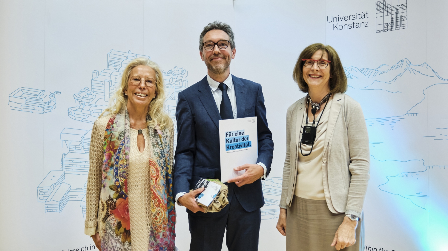 © Universität Konstanz, Philipp Uricherv.l.n.r.: Tina Ulmer-Ziehr, Joost Woltering und Rektorin Katharina Holzinger