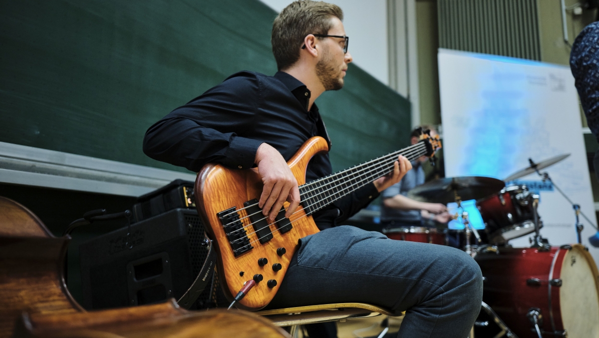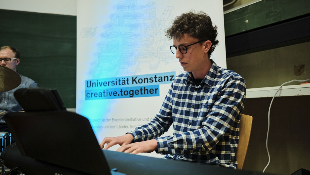 Zwischenspiel der Jazzcombo der Universität, launiger Bossa-Nova im Hörsaal zwischen Tafel und Stuhlreihen. Zu der Musik werden Meilensteine aus Studium und Lehre präsentiert. Einen besonders erfreulichen Erfolg hebt Katharina Holzinger hervor: Das von Studierenden entwickelte Lehrangebot „qualifikation N“ brachte der Universität Konstanz erneut den Landeslehrpreis ein. „Das ist keine Selbstverständlichkeit. Dass wir den Landeslehrpreis zum zweiten Mal in Folge bekommen haben, zeigt, dass wir so einiges richtig machen in Studium und Lehre“, betont Katharina Holzinger. Das Preisgeld soll für die Weiterentwicklung des Lehrprogramms verwendet werden, aber auch für „Curriculumswerkstätten“ zum Thema „Nachhaltigkeit in der Lehre“ in verschiedenen Fachbereichen.