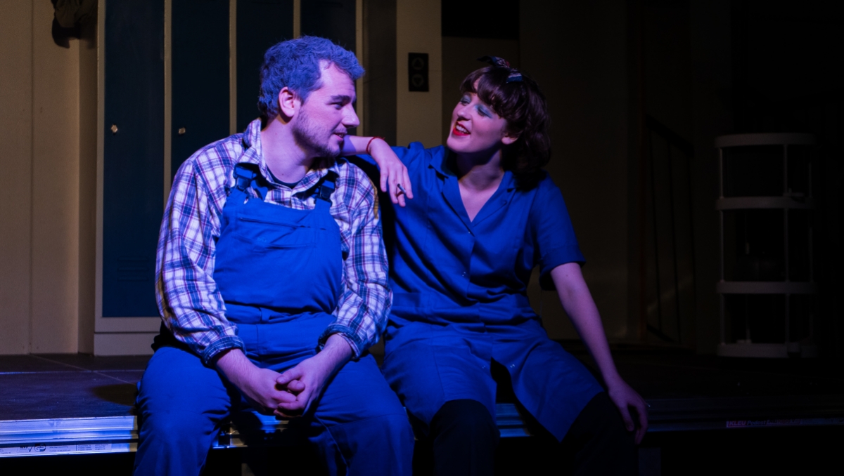© Unitheater KonstanzReinigungskraft Magda (links: Anna Kamilla Verebély) mit Hausmeister-Azubi Fynn (rechts: Vivienne Bennett)