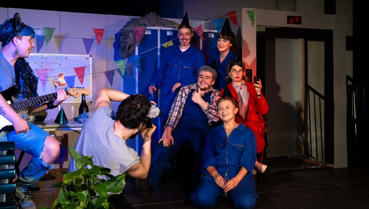Im Zentrum von „Ja Chef, wird gemacht!“ steht Fynn, junge 19 Jahre alt und mit dem Traum, einmal Punkmusiker in Berlin zu werden. Wir sehen ihn, wie er allerdings – statt die große Musikkarierre zu verfolgen – gedrängt von Mama eine Ausbildung zum Hausmeister beginnt. Gespielt von Vivienne Bennett mit viel Feingefühl für die Unsicherheiten des Erwachsenwerdens, durchläuft Fynn Höhen, Tiefen und unzählige To-Do-Listen. Mit jedem kaputten Bürostuhl und jeder zu entlüftenden Heizung wächst Fynn nicht nur langsam ins Team hinein, sondern beginnt auch, seine eigene Rolle darin zu hinterfragen. Als ihn sein „work bestie“ Magda am Ende des Stücks fragt, warum er eigentlich im Hausmeisterteam geblieben ist, antwortet er schlicht: „Weil immer irgendwas kaputtgeht.“ Fynn ist klargeworden: Gerade dort, wo Dinge nicht perfekt sind, findet man oft den Platz, an dem man wirklich gebraucht wird.