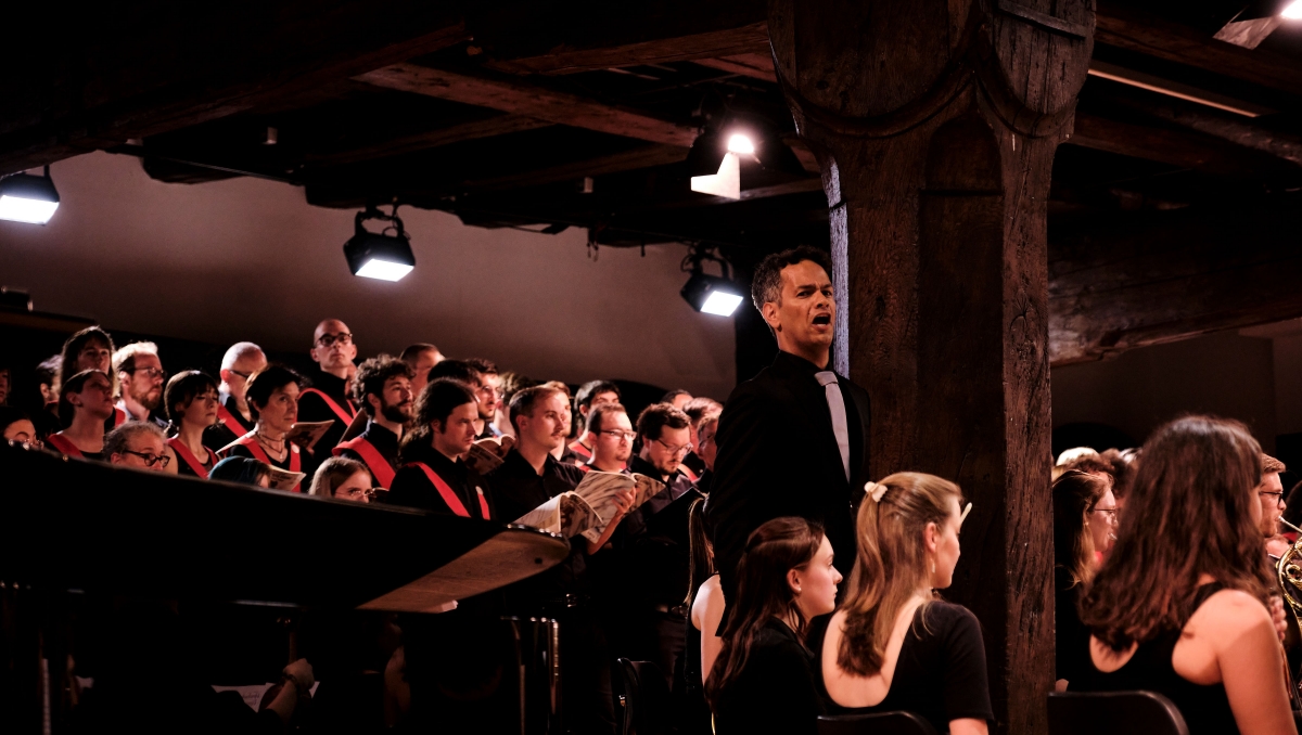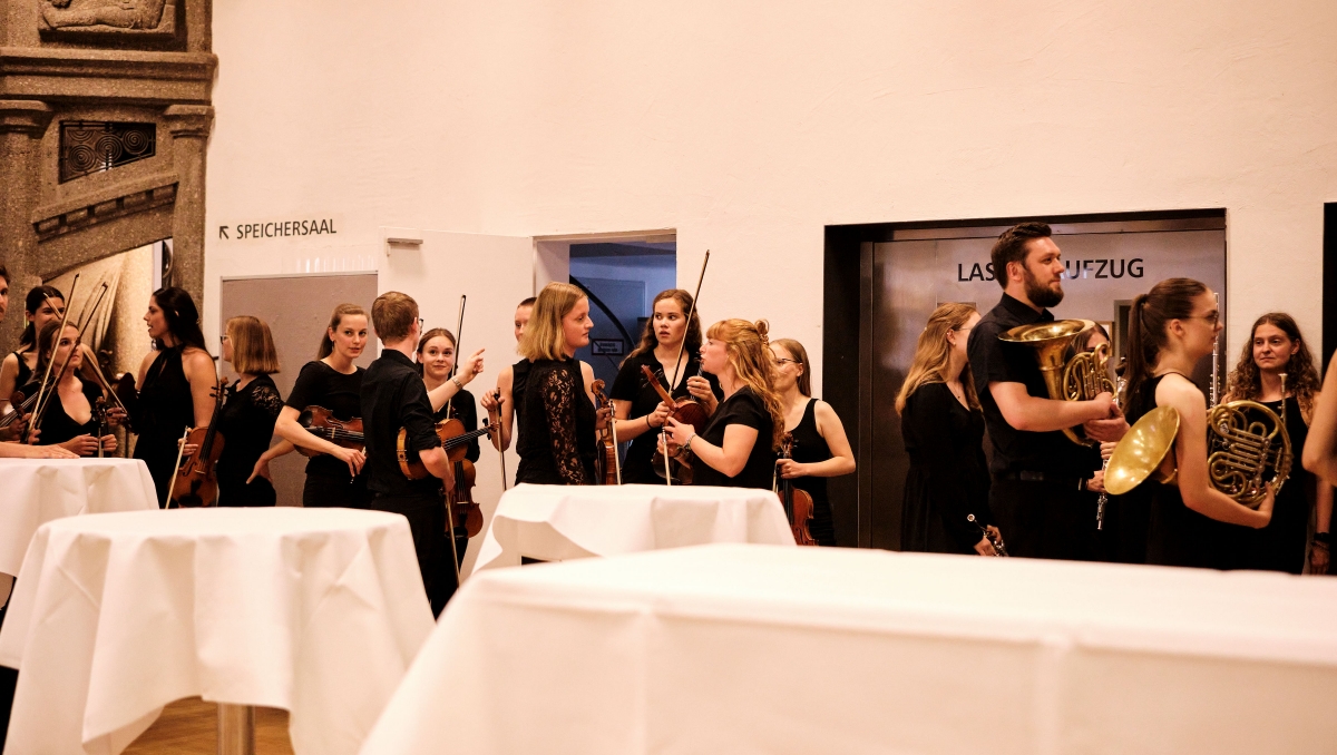 An einem sonnigen Samstag Mitte Juni füllte sich ab 20 Uhr zusehends der Festsaal im Konzilgebäude Konstanz – bei 26 Grad Außentemperatur, die bei Einbruch des Abends immer noch vorherrschte. MusikerInnen liefen aufgeregt in der Vorhalle umher, wobei insbesondere die Kostüme des italienischen Coro dell Collegium Musicum der Universität Bologna auffielen, deren Mitglieder mit roter Stola über der Schulter ihre Zugehörigkeit zeigten.
