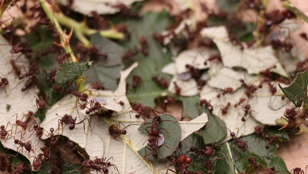 „Eine Kolonie von Blattschneiderameisen wählt die beste verfügbare Blattqualität für ihr Nest aus“, berichtet Kleineidam. „Die Kolonie als Kollektiv ist der Experte in diesem Auswahlprozess.“ Die Blattfragmente werden auf dem Weg von der Futterstelle bis zu ihrem Nest mehrmals von verschiedenen Ameisen überprüft. „Die wiederholte Bewertung durch viele Ameisen stellt sicher, dass die guten Fragmente im Nest landen und minderwertige Fragmente draußen bleiben“, so Kleineidam. Im Nest werden die Blattfragmente dann an den symbiotischen Pilz 'verfüttert' und die Ameisen ernähren sich ausschließlich von dem Pilz. Deshalb ist eine gute Blattauswahl so enorm wichtig. Um den Auswahlprozess zu erforschen, hat er mit Markern versehene Blattfragmente unterschiedlicher Qualität unter das Futter gemischt. Mit Hilfe der Marker kann er feststellen, welche Qualität präferiert und weiter getragen wird oder abgelehnt wird.