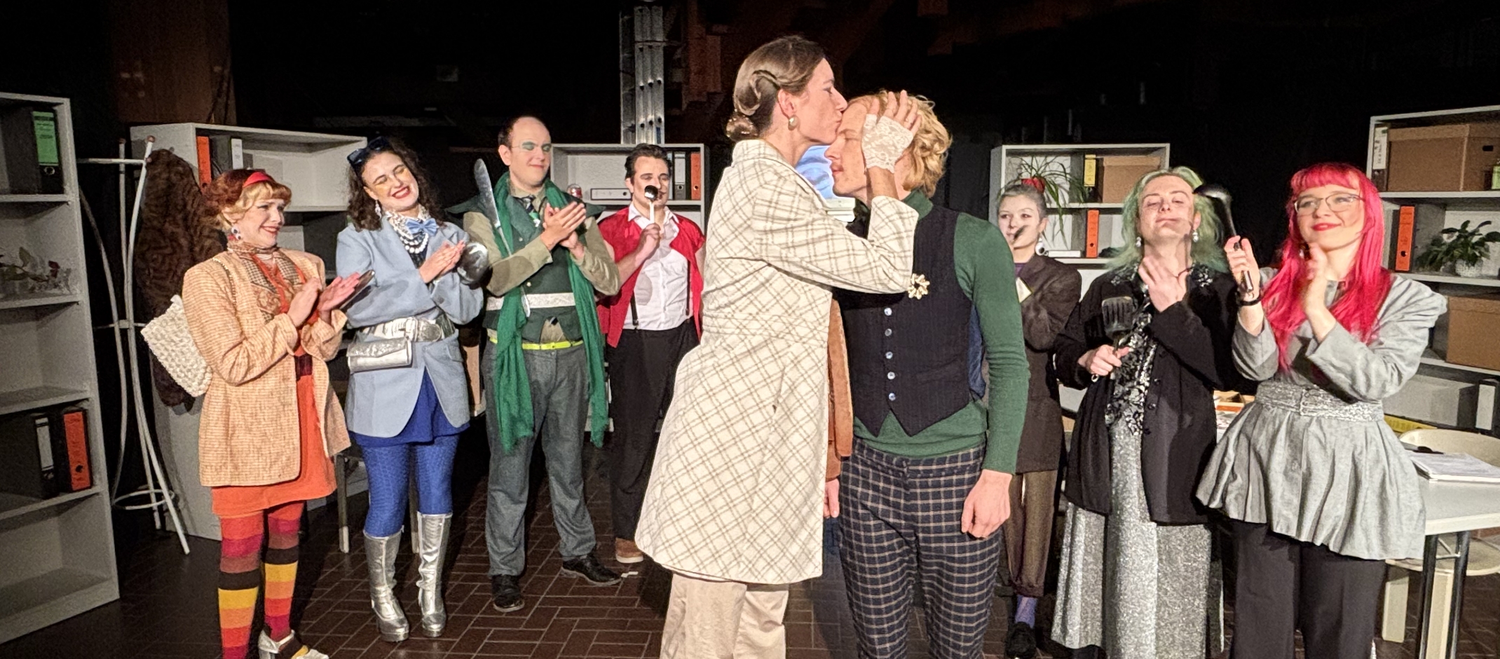 Yet who is behind the memo? What are their true motives for sending it? Vice director Balas (played outstandingly by Annika Siewert as the sophisticated antagonist) soon reveals that she not only gave the order to introduce Ptydepe as the official language but, because of an intrigue, can force director Groß to bow to the will of the masses. As Groß quits and gives Balas her position, her subordinates show their true natures – some are schemers, others opportunists and still others are simply too slow to take any action at all. In a very pointed and skillful way, the young actors of the university theatre expose the weaknesses of their characters in a microcosm that is representative of a social community under a state apparatus.