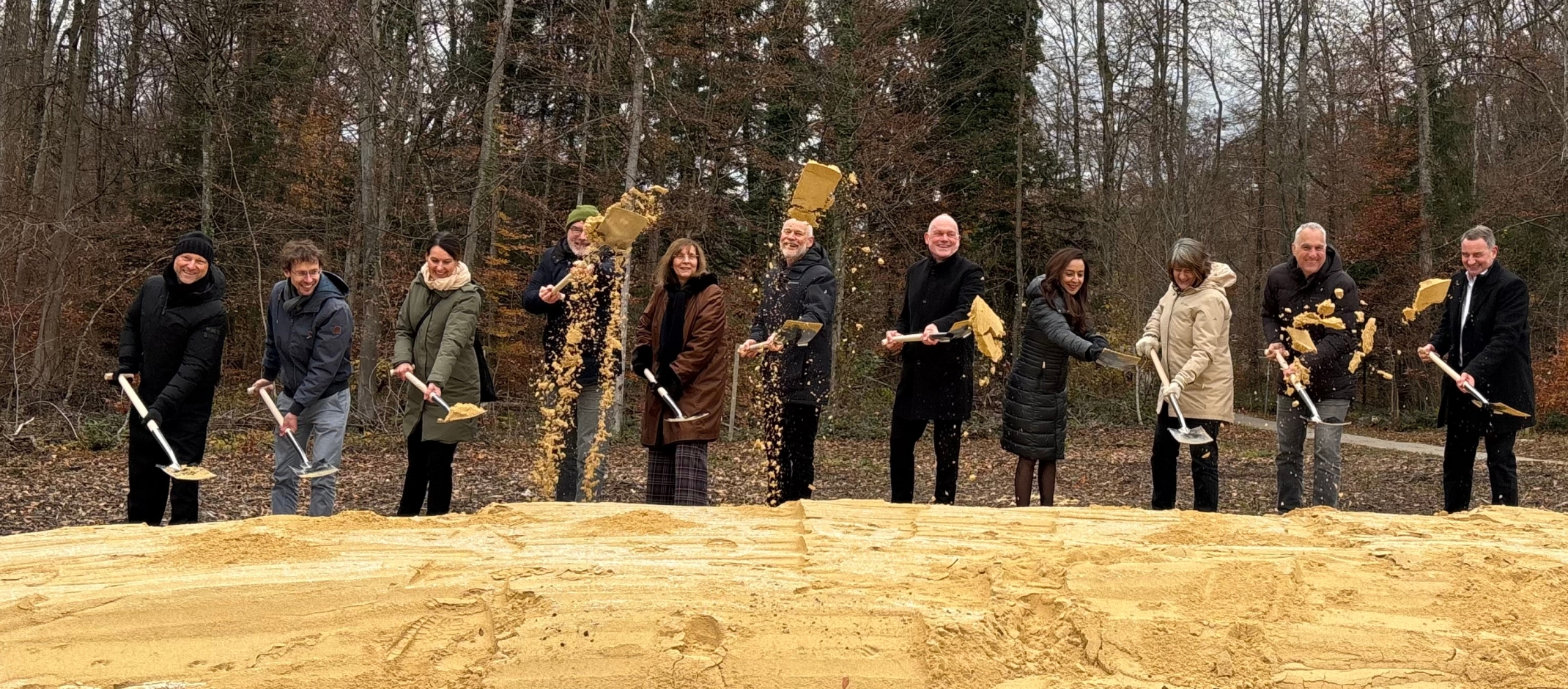 Elf Spaten stechen in den Boden, nehmen Sand auf, schleudern ihn in die Höhe. Für einen kurzen Moment schwebt eine Wolke aus Sandkörnern frei in der Luft, dann fällt sie herab wie ein Vorhang, der die Bühne freigibt für das Gebäude, das hier entstehen wird. Rundum Applaus von zahlreichen ZuschauerInnen, die an jenem Novembermittag zusammengekommen sind, um die Geburtsstunde eines der wichtigsten Bauprojekte der Universität Konstanz mitzuverfolgen: Der erste Spatenstich für das Forum Konstanz ist getan! Viele weitere werden folgen, bis an dieser Baustelle dereinst das mit Spannung erwartete Zentrum für Wissenschaft und Gesellschaft stehen wird.