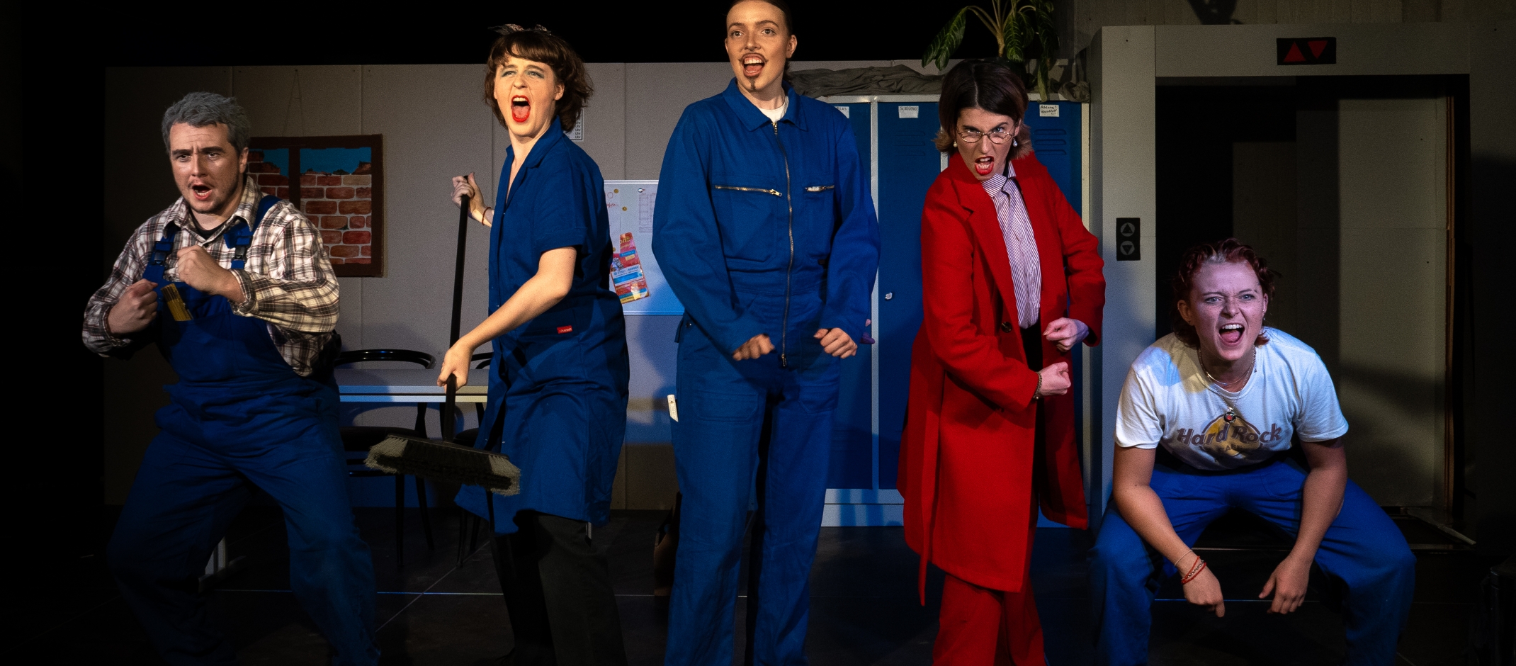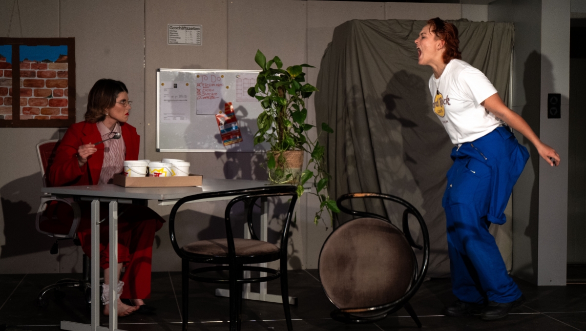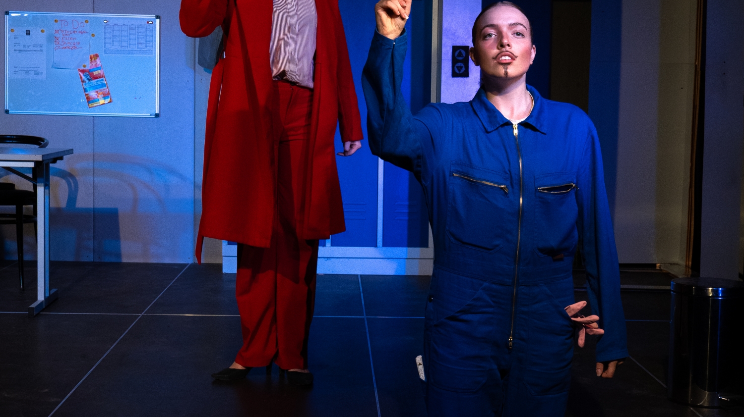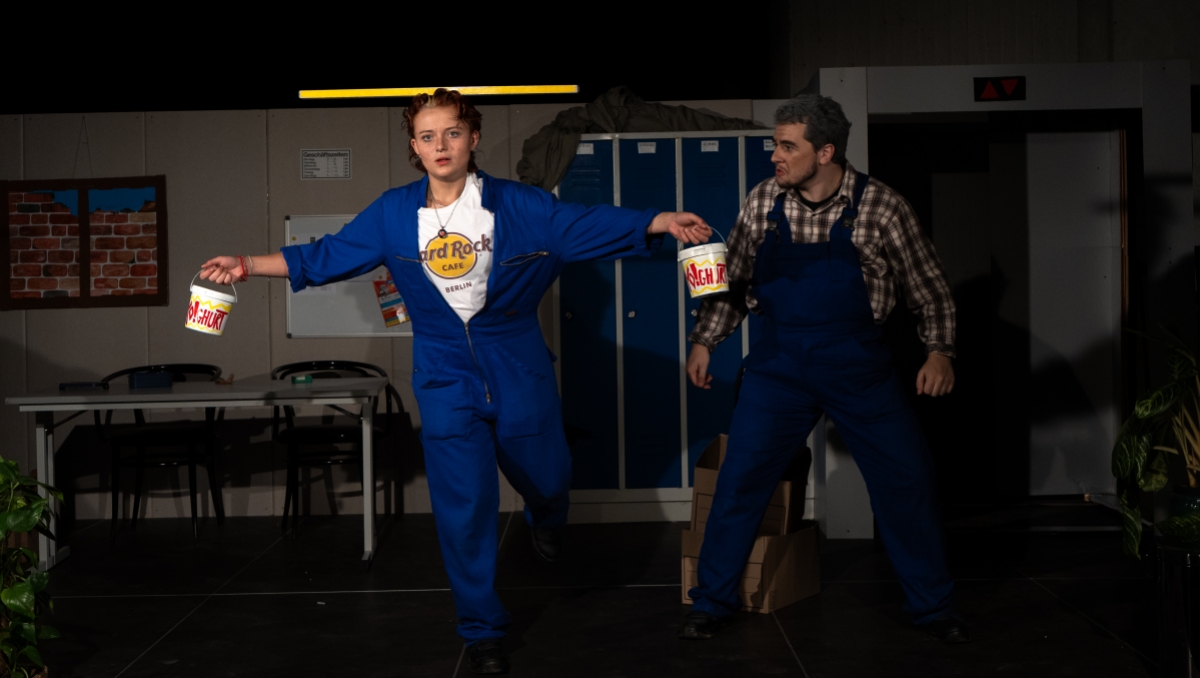 Im Zentrum von „Ja Chef, wird gemacht!“ steht Fynn, junge 19 Jahre alt und mit dem Traum, einmal Punkmusiker in Berlin zu werden. Wir sehen ihn, wie er allerdings – statt die große Musikkarierre zu verfolgen – gedrängt von Mama eine Ausbildung zum Hausmeister beginnt. Gespielt von Vivienne Bennett mit viel Feingefühl für die Unsicherheiten des Erwachsenwerdens, durchläuft Fynn Höhen, Tiefen und unzählige To-Do-Listen. Mit jedem kaputten Bürostuhl und jeder zu entlüftenden Heizung wächst Fynn nicht nur langsam ins Team hinein, sondern beginnt auch, seine eigene Rolle darin zu hinterfragen. Als ihn sein „work bestie“ Magda am Ende des Stücks fragt, warum er eigentlich im Hausmeisterteam geblieben ist, antwortet er schlicht: „Weil immer irgendwas kaputtgeht.“ Fynn ist klargeworden: Gerade dort, wo Dinge nicht perfekt sind, findet man oft den Platz, an dem man wirklich gebraucht wird.